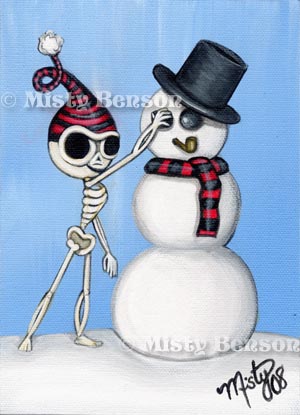 It’s a #MorbidlyAdorable Snow Day! It just keeps snowing and snowing out there! I almost needed snow shoes just to get to the mail box (if the poor mailman even makes it today!) I’m glad I have the Skellies to help me make Snowmen. I’d look real silly out there all by myself! Ha ha!